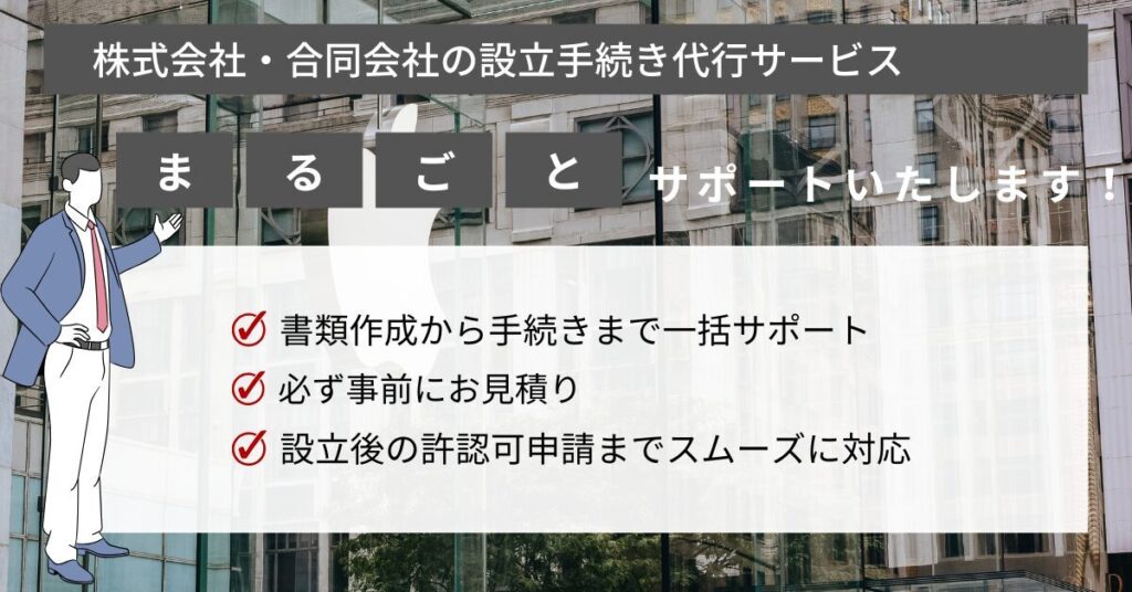 株式会社・合同会社の設立とセットで、許認可(許可・届出)の申請も可能です。